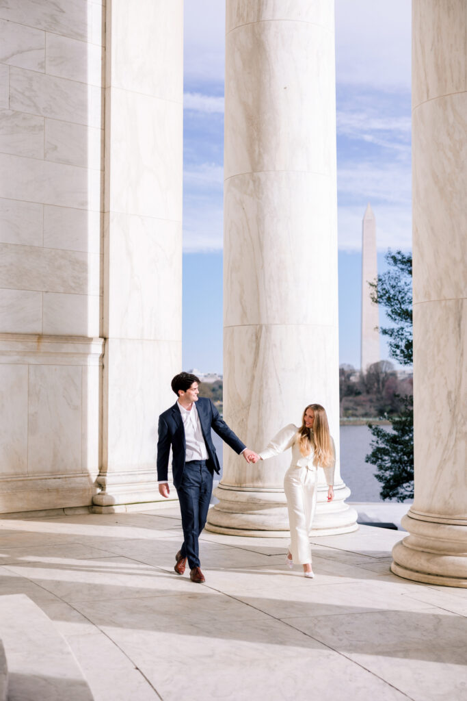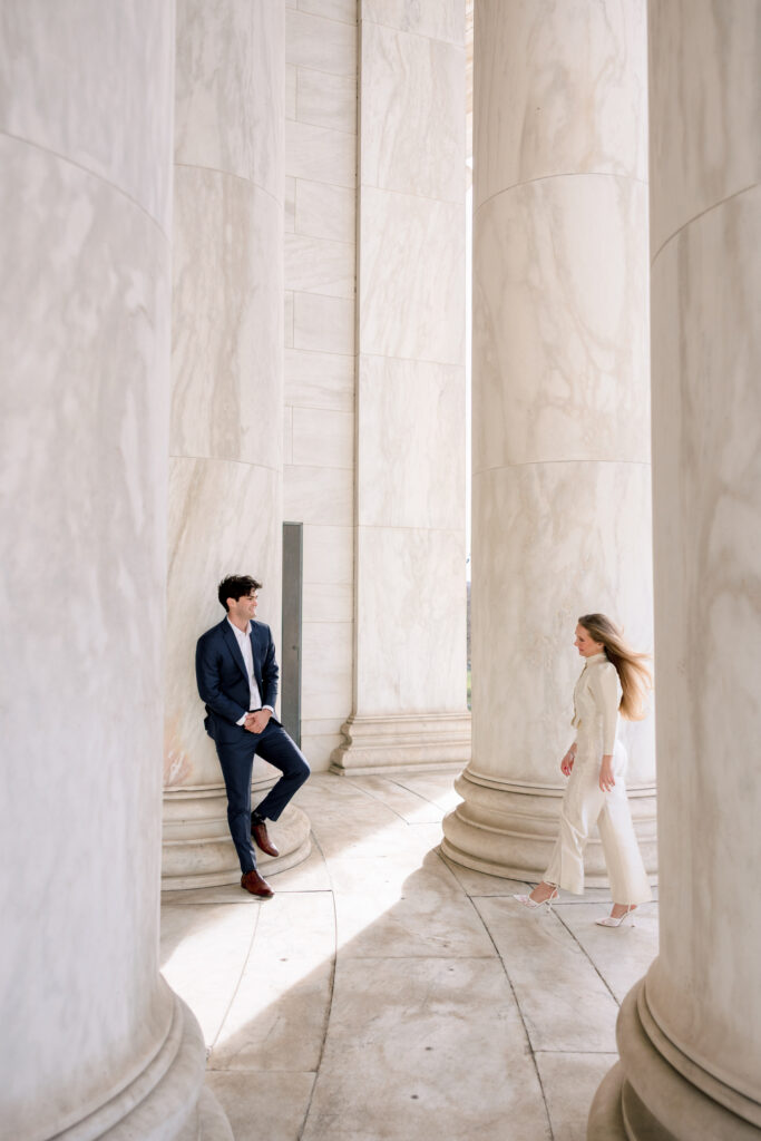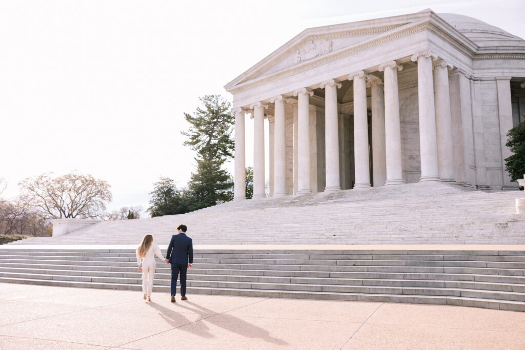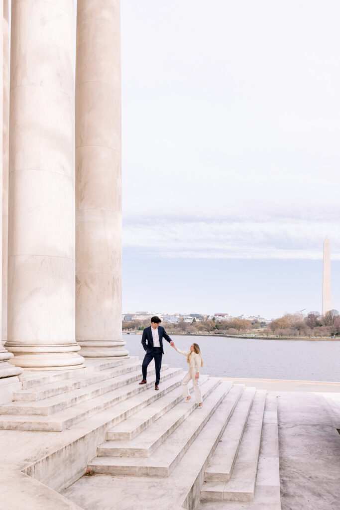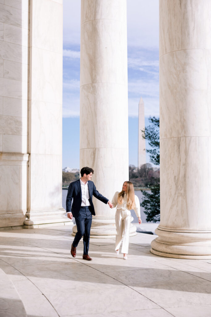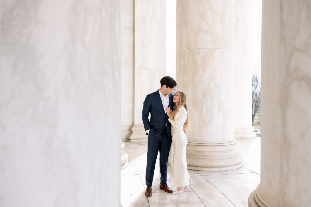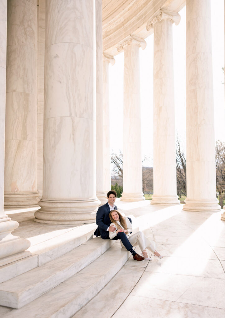 That contrast is part of what made this D.C. engagement session so special. It held both softness and structure. Grand scenery and intimate connection. Stunning portraits and candid moments. In so many ways, it reflected the kind of balanced imagery I always want my couples to walk away with, photographs that exude everything they sensed in the moment. And bonus, it was WARM! We were chilly after the Jefferson so it was a perfect contrast in more ways than one.