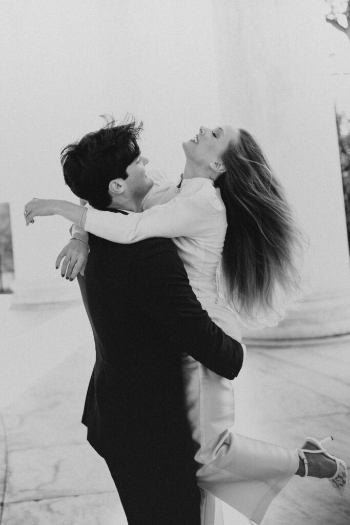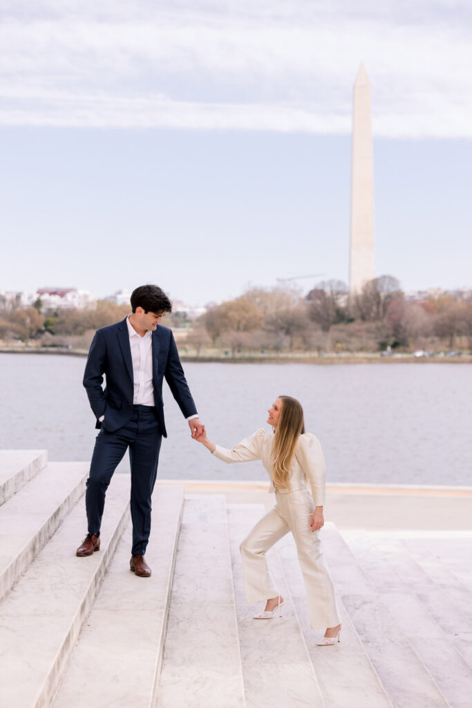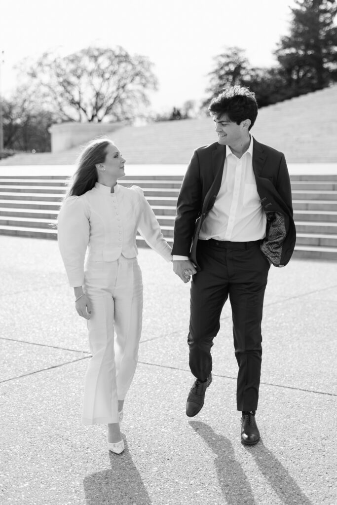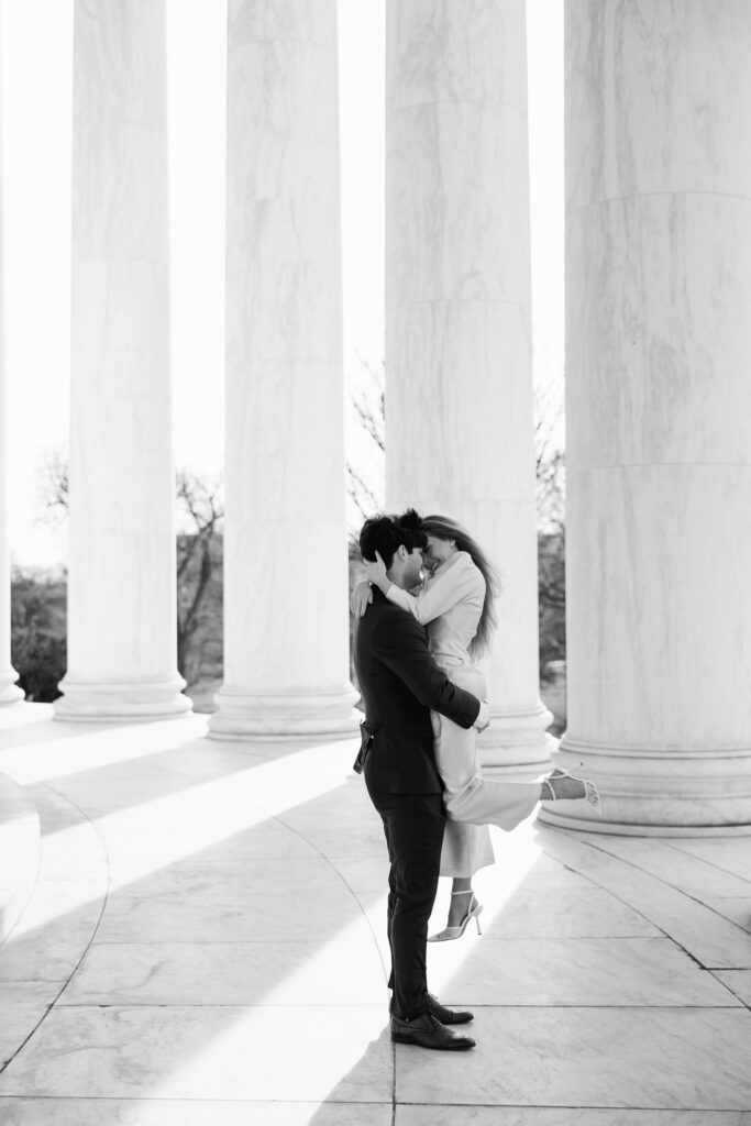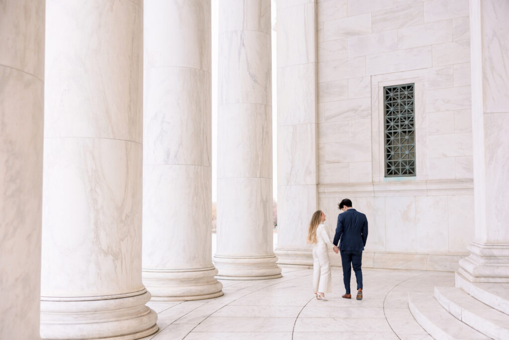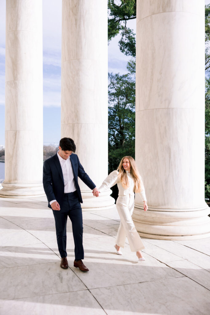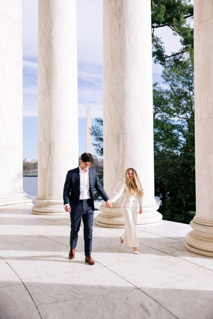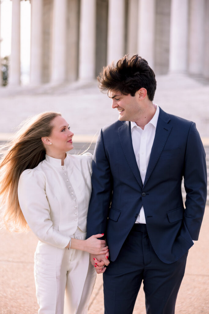 That contrast is part of what made this D.C. engagement session so special. It held both softness and structure. Grand scenery and intimate connection. Stunning portraits and candid moments. In so many ways, it reflected the kind of balanced imagery I always want my couples to walk away with, photographs that exude everything they sensed in the moment. And bonus, it was WARM! We were chilly after the Jefferson so it was a perfect contrast in more ways than one.