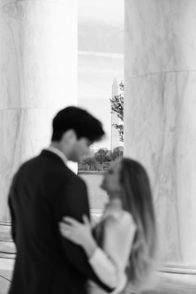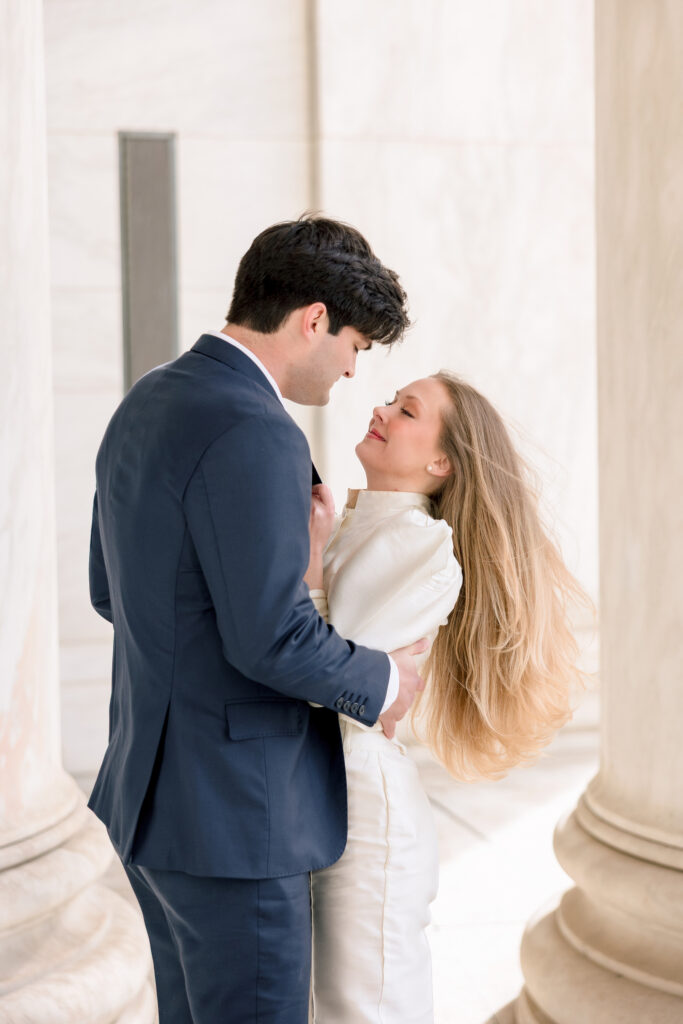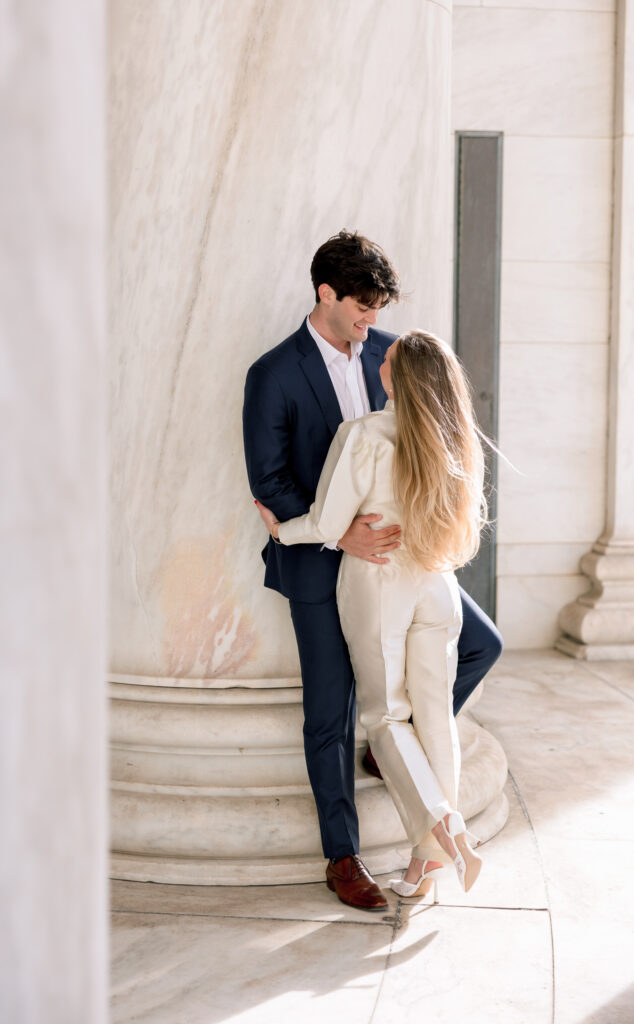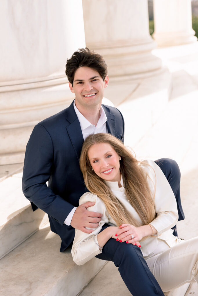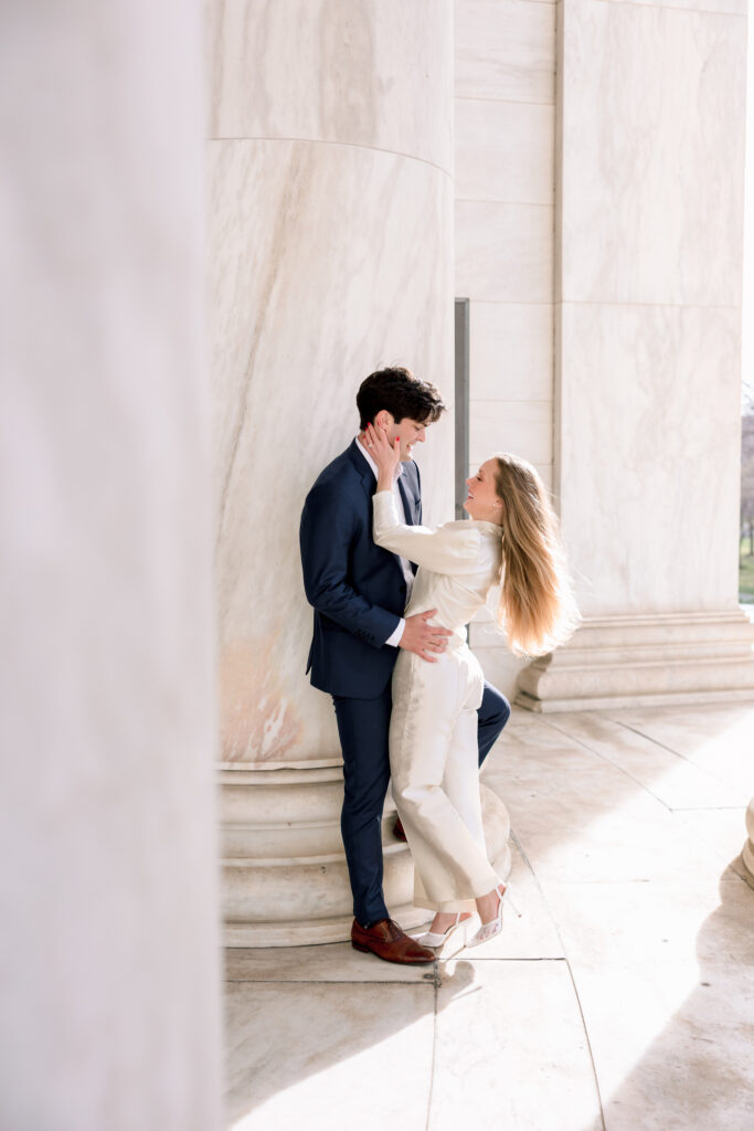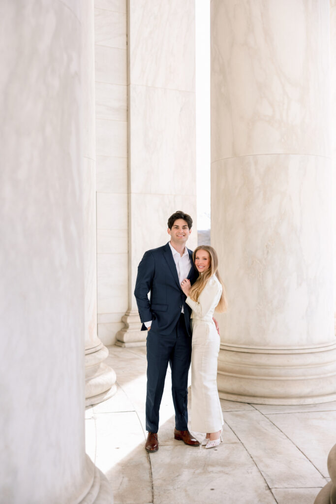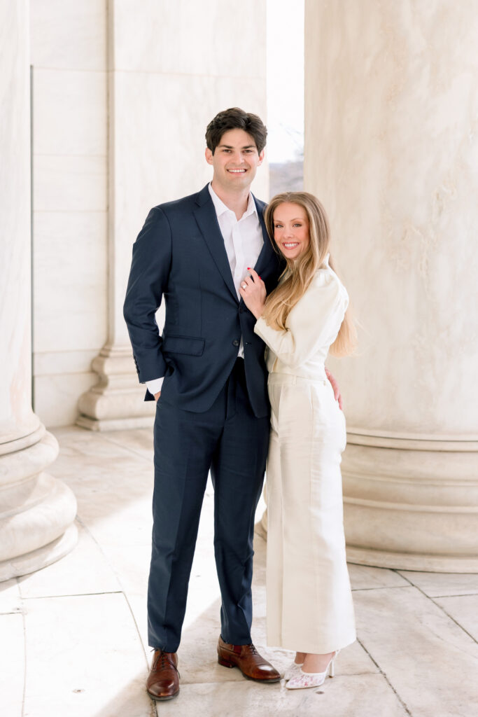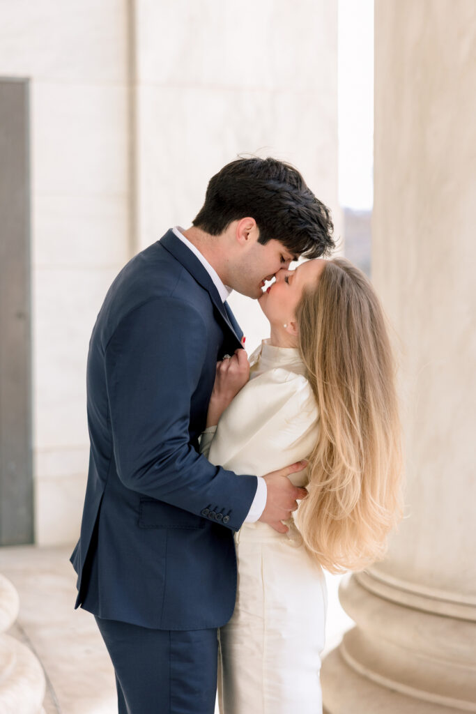 At the Jefferson Memorial, the soft stone architecture and open views created the perfect backdrop for portraits that felt classic, romantic, and full of quiet emotion. There’s a steadiness to that space, refined, peaceful, and full of ageless appeal, that paired so naturally with Abbie Grace and William’s connection. They moved through each moment with such ease, and the result was imagery that felt both elevated and organic.