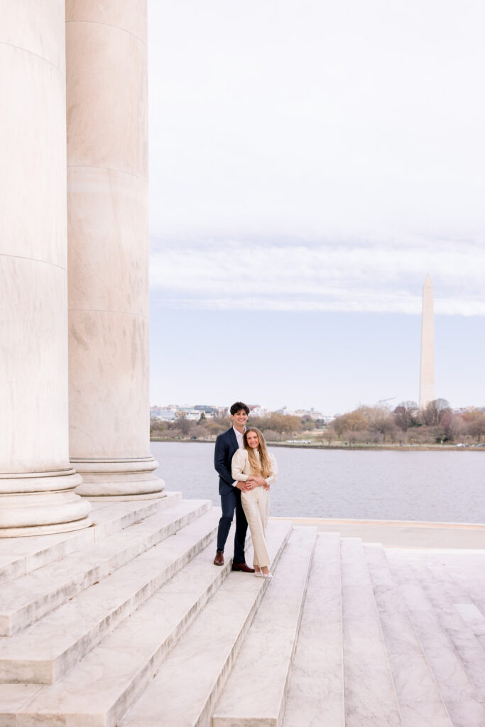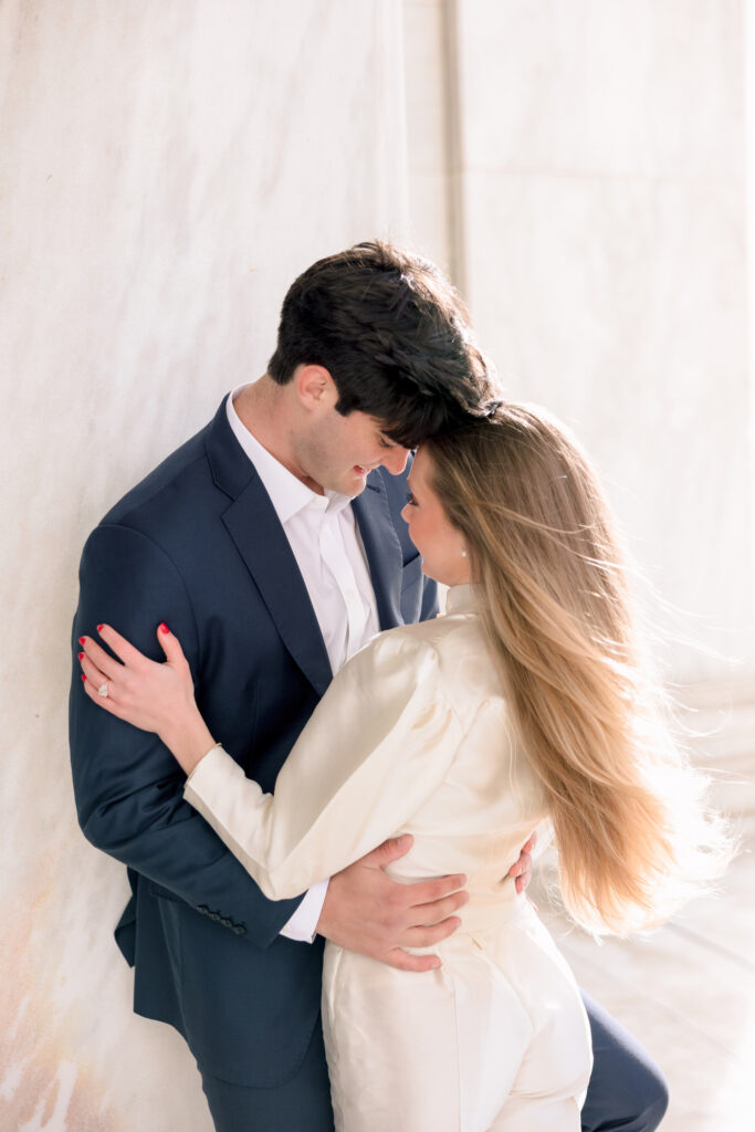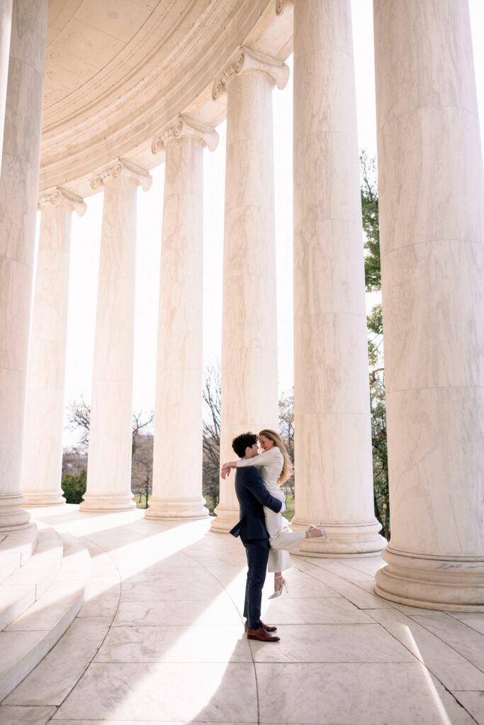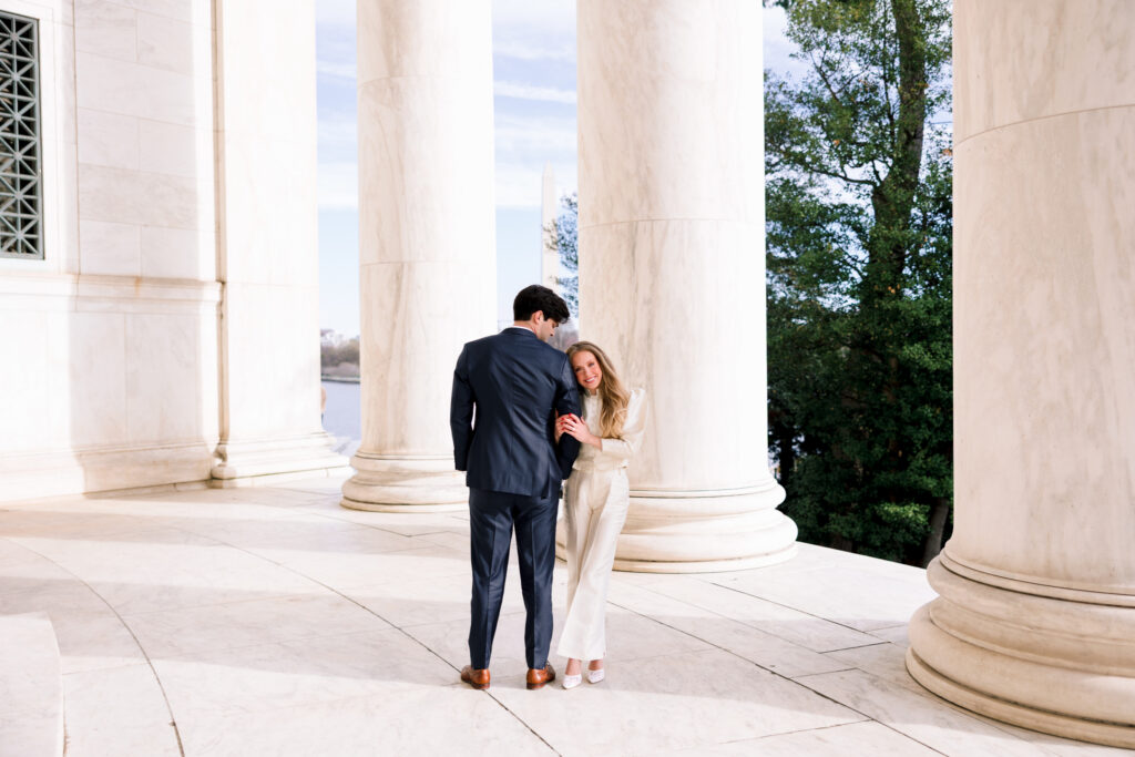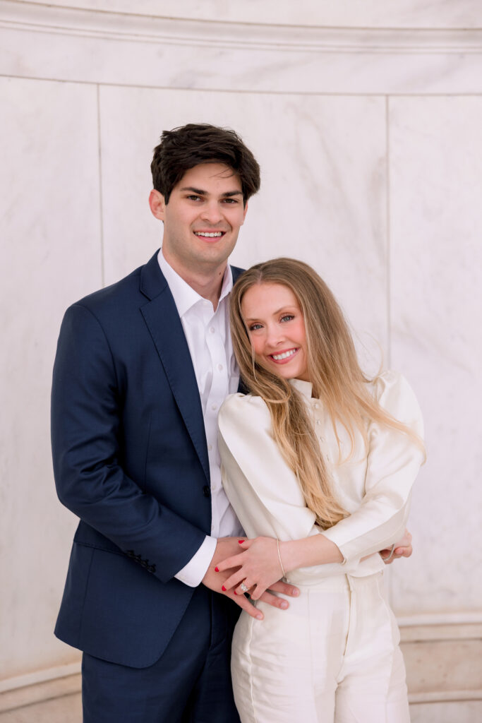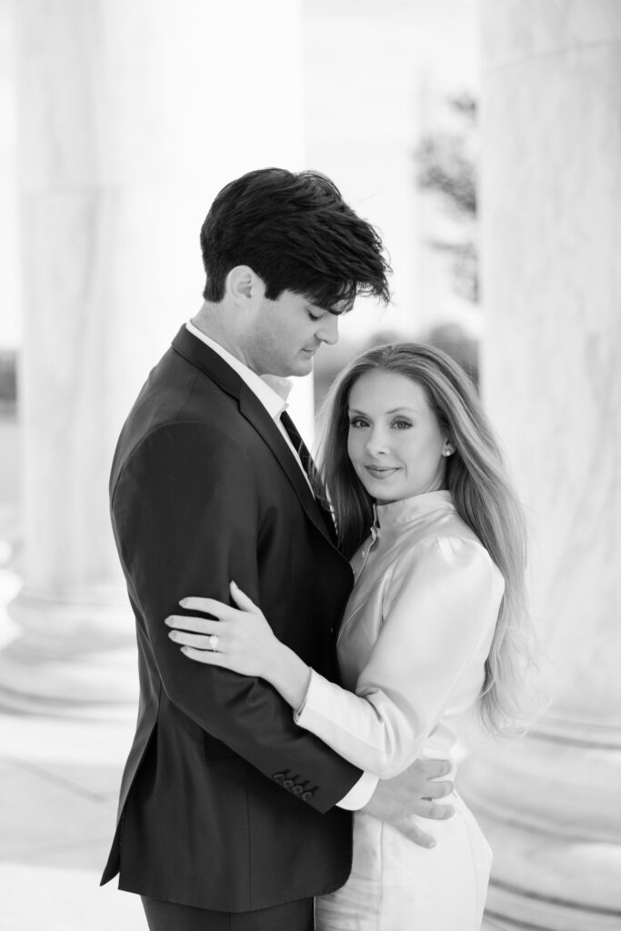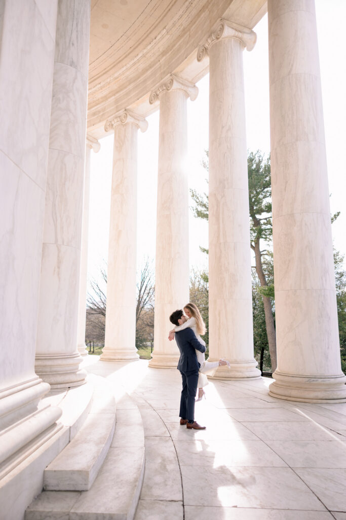 At the Jefferson Memorial, the soft stone architecture and open views created the perfect backdrop for portraits that felt classic, romantic, and full of quiet emotion. There’s a steadiness to that space, refined, peaceful, and full of ageless appeal, that paired so naturally with Abbie Grace and William’s connection. They moved through each moment with such ease, and the result was imagery that felt both elevated and organic.