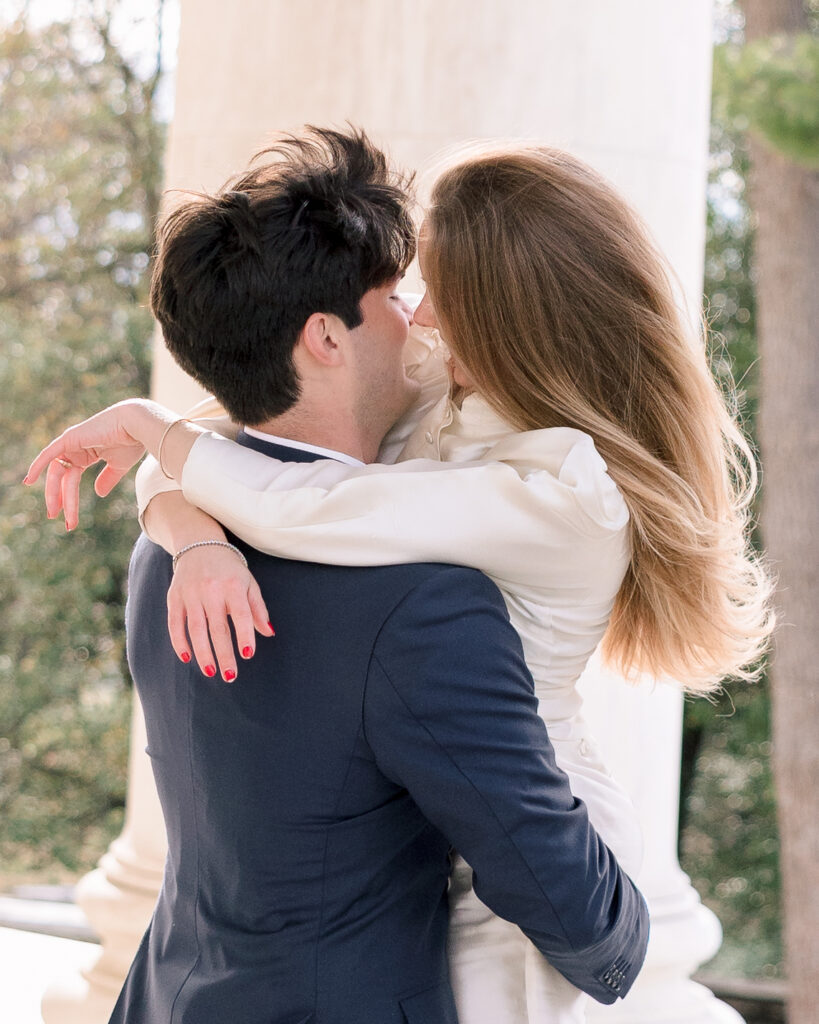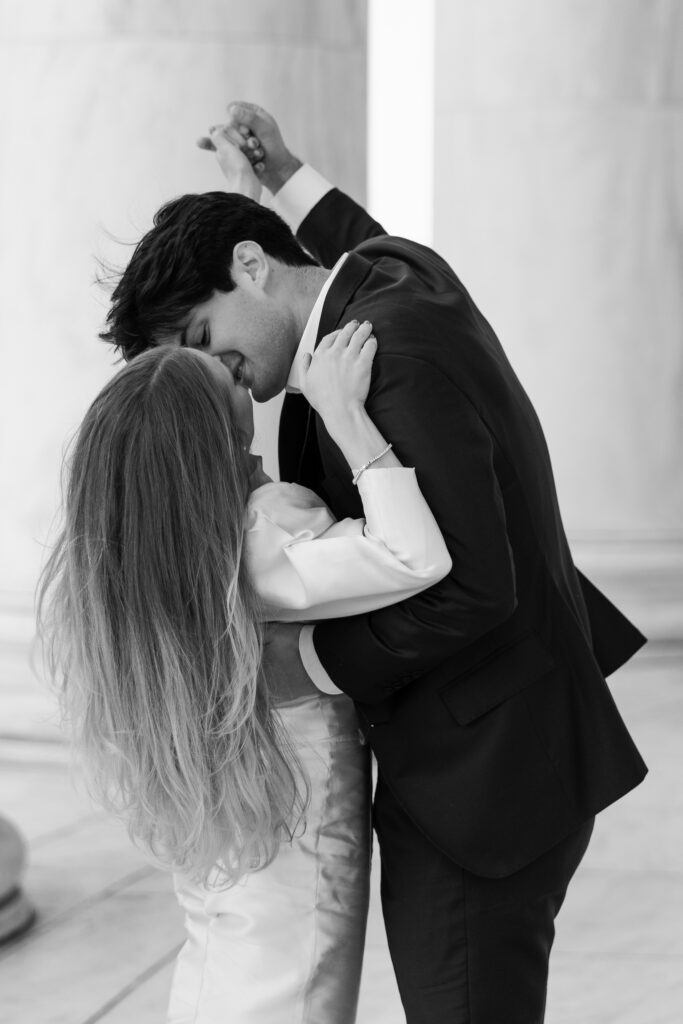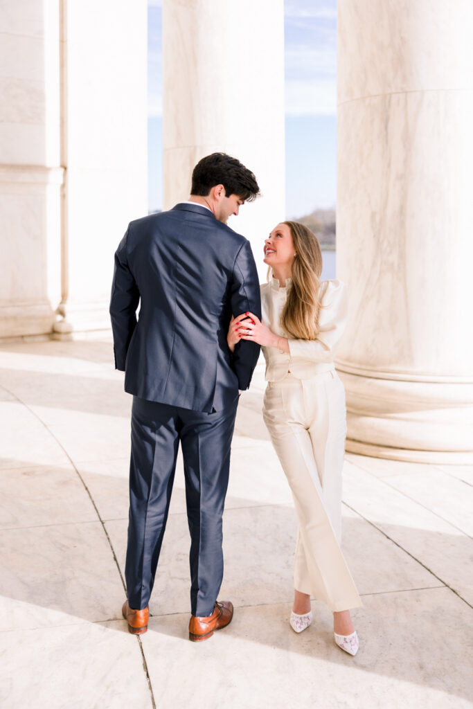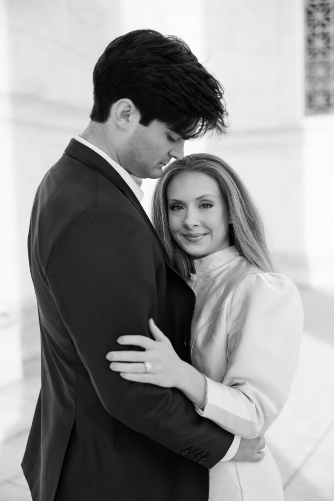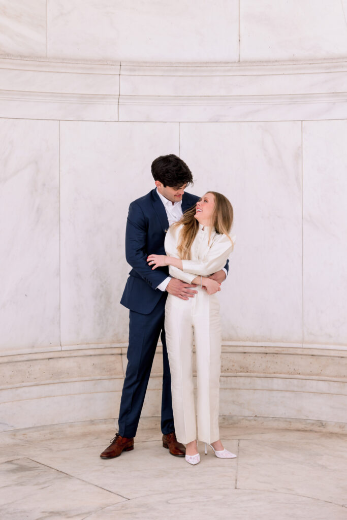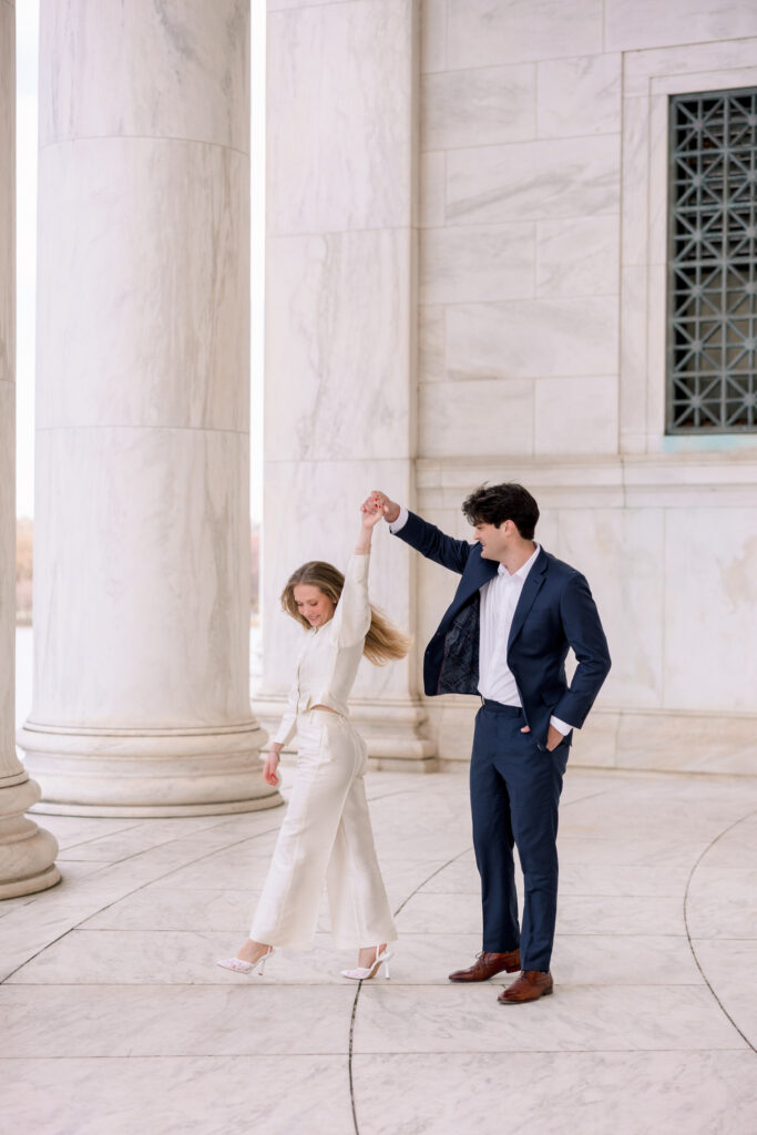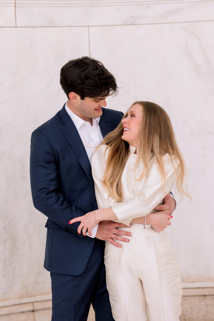 At the Jefferson Memorial, the soft stone architecture and open views created the perfect backdrop for portraits that felt classic, romantic, and full of quiet emotion. There’s a steadiness to that space, refined, peaceful, and full of ageless appeal, that paired so naturally with Abbie Grace and William’s connection. They moved through each moment with such ease, and the result was imagery that felt both elevated and organic.
