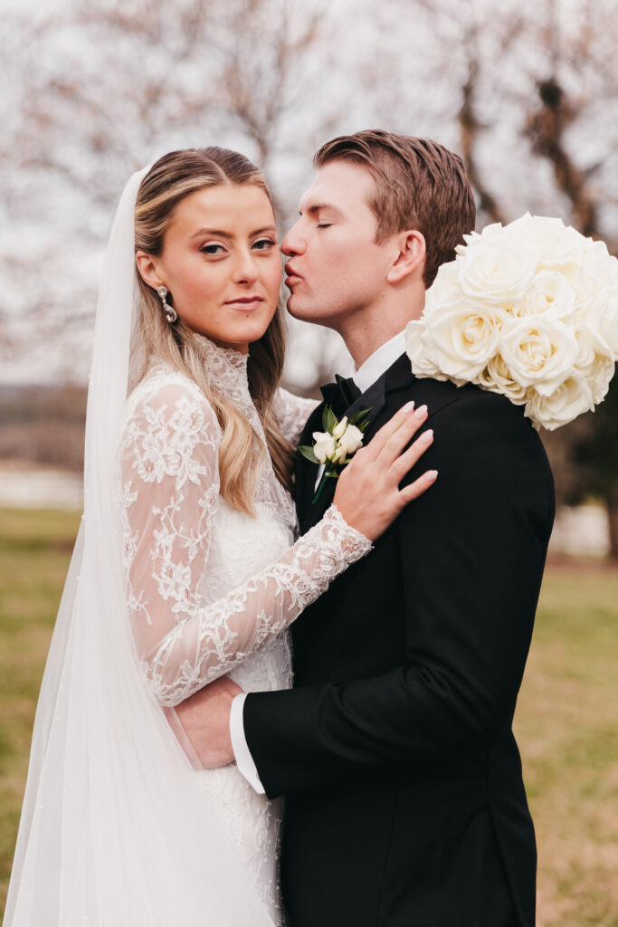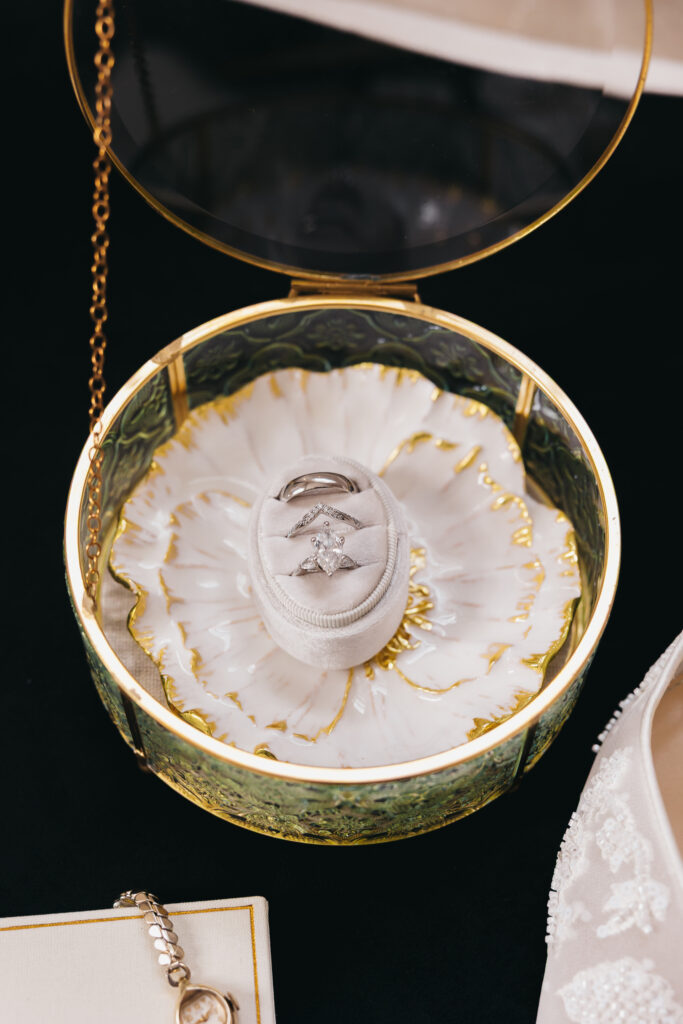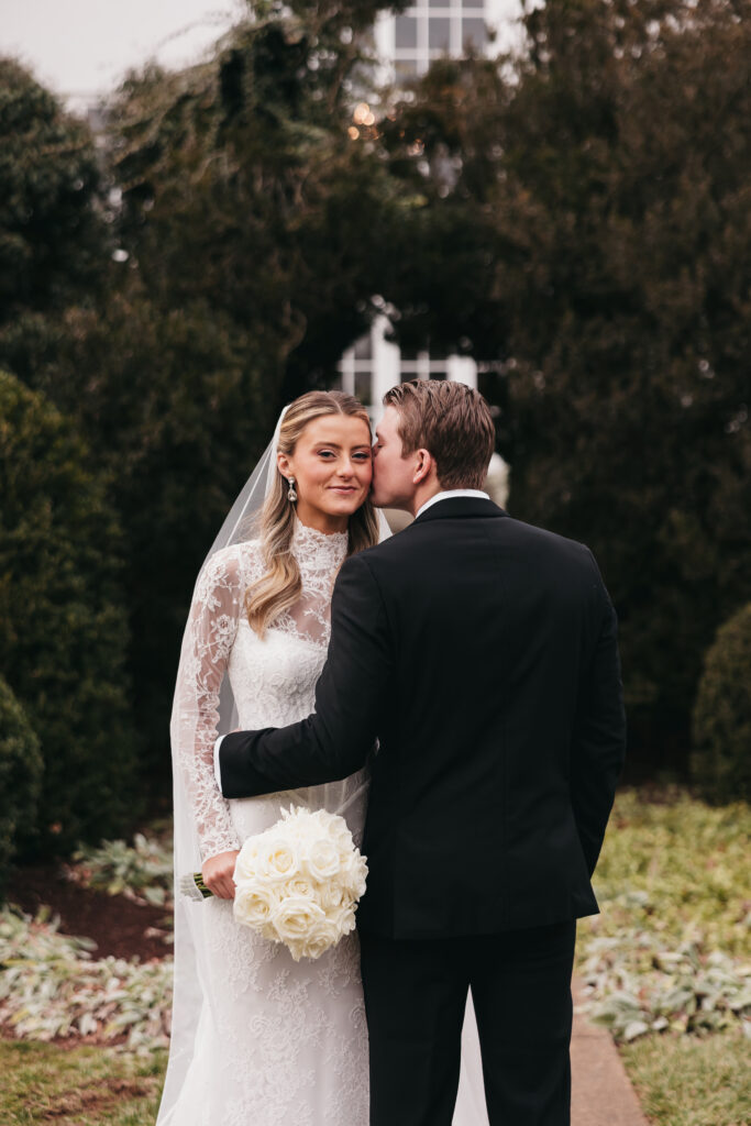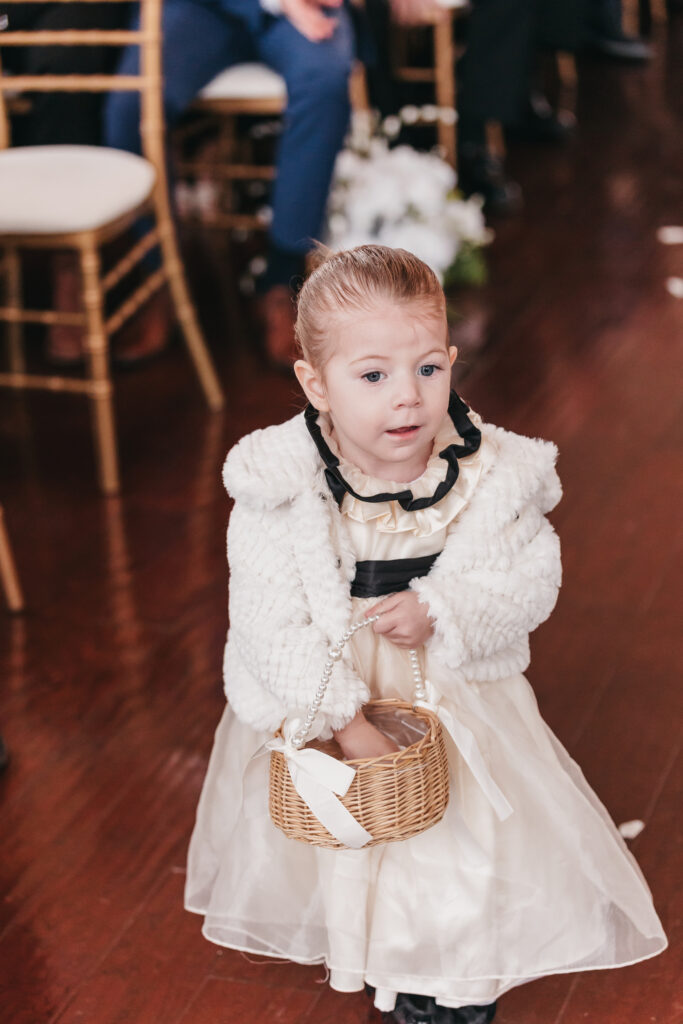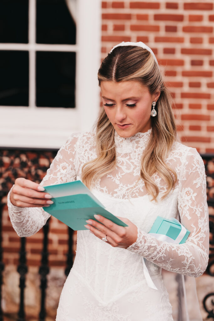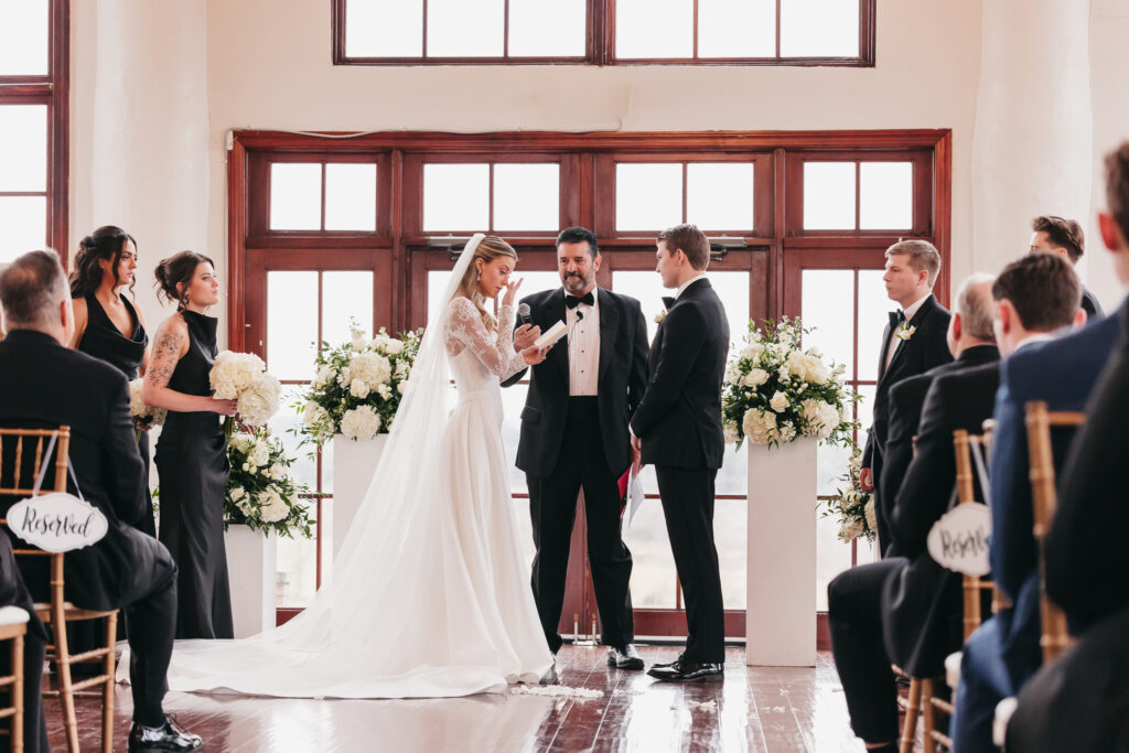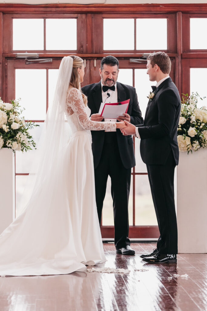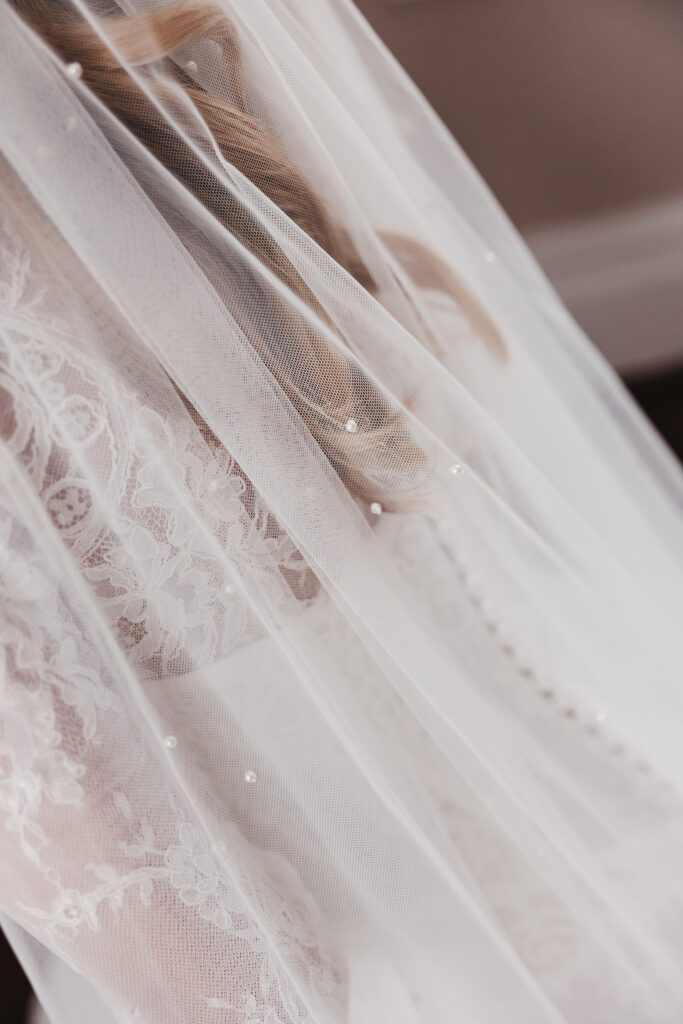 The air carried a gentle December chill as the morning unfolded, crisp, still, and full of anticipation. Inside the bridal suite, warm light filtered through tall windows, catching on lace fabric, gold and silver details, and the soft movement of hands helping Olivia into her gown. There was an unspoken reverence and so much joy in the room — the kind that settles when something meaningful is about to begin. It was such a fun space to photograph the details and candid moments.