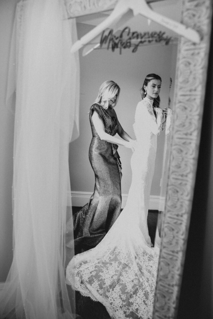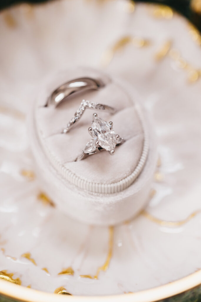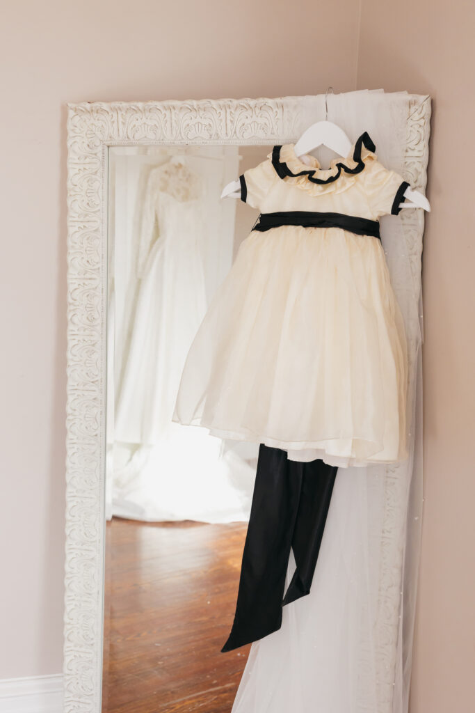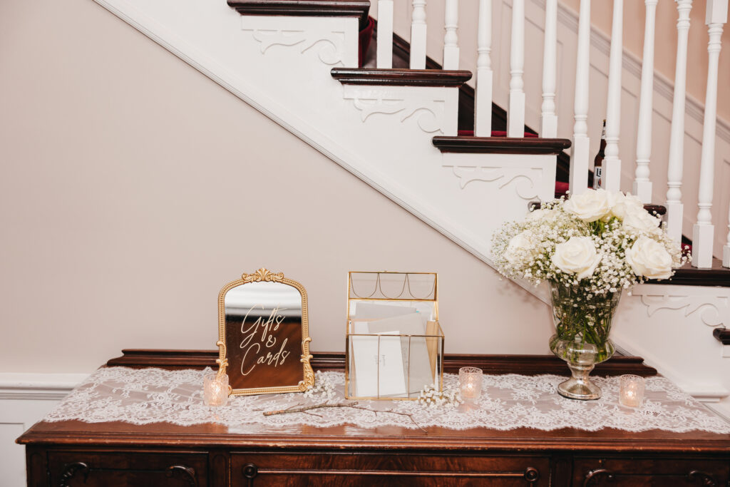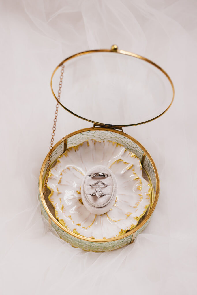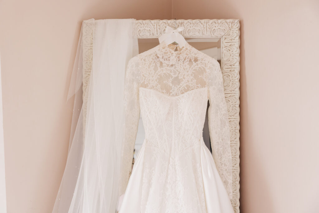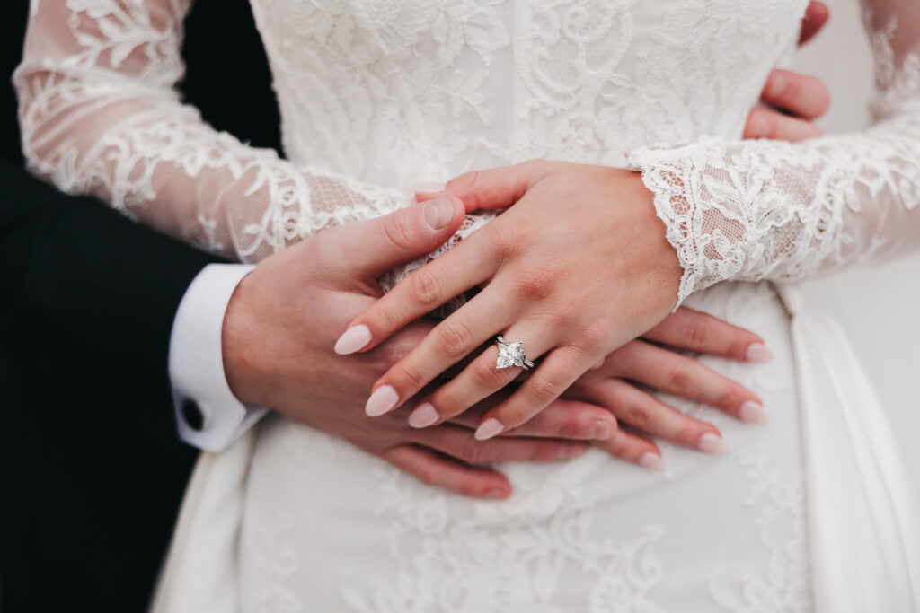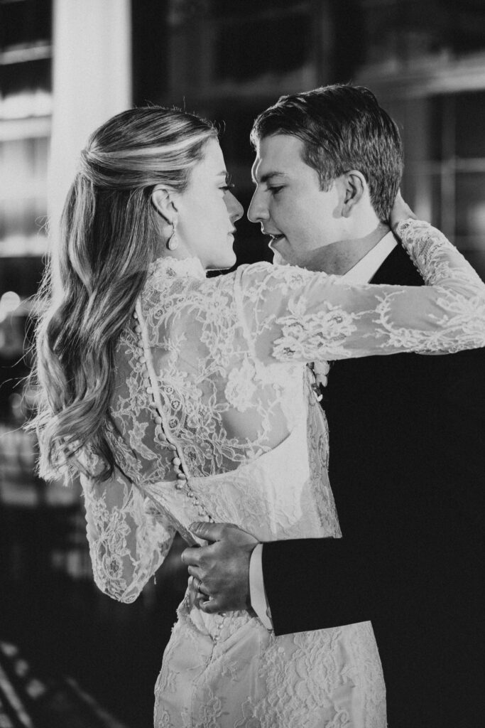The air carried a gentle December chill as the morning unfolded, crisp, still, and full of anticipation. Inside the bridal suite, warm light filtered through tall windows, catching on lace fabric, gold and silver details, and the soft movement of hands helping Olivia into her gown. There was an unspoken reverence and so much joy in the room — the kind that settles when something meaningful is about to begin. It was such a fun space to photograph the details and candid moments.