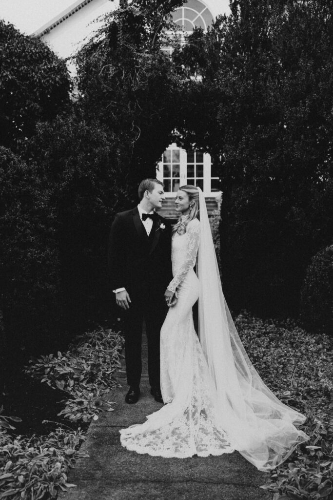 Later, when Olivia and Andrew met for their first look, the world seemed to soften around them. Winter light fell gently across the secret garden as she walked towards him with voices low, smiles unguarded. No audience. No rush. Just presence. Their connection is steady and rooted, and in that quiet exchange, you could feel the weight and wonder of what they were stepping into together.