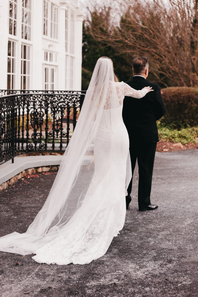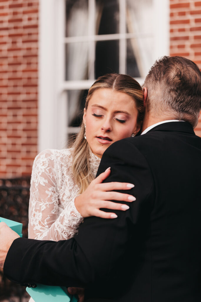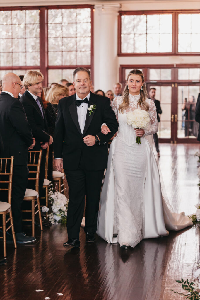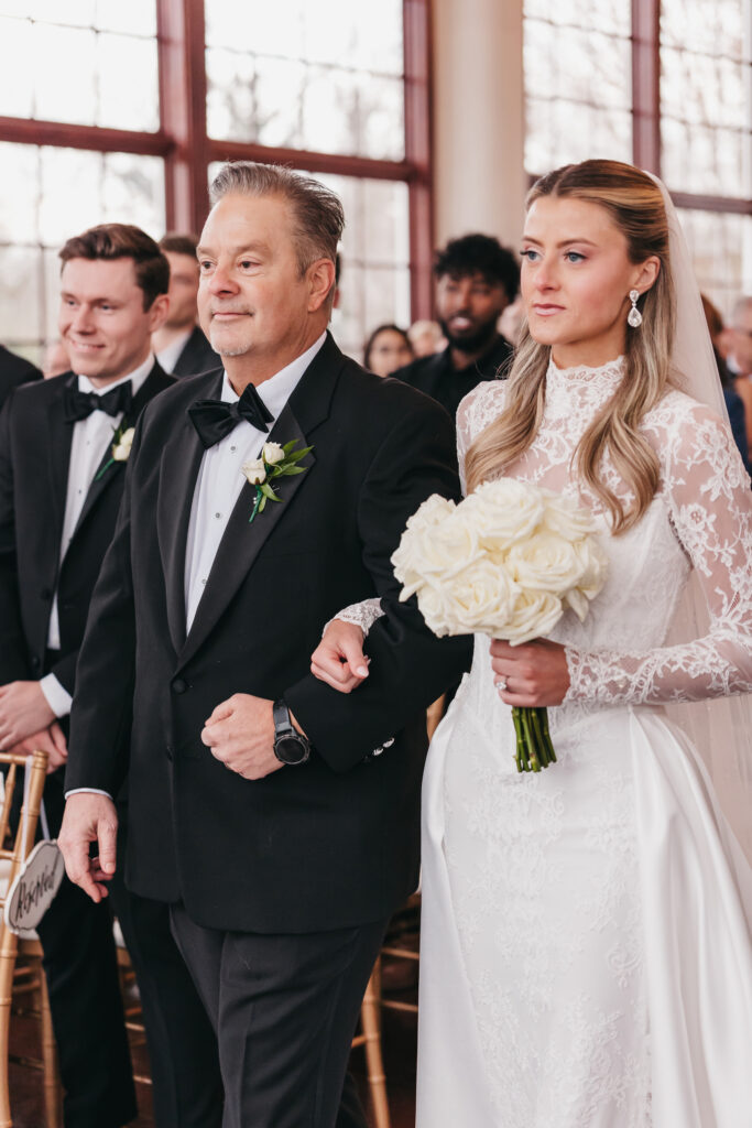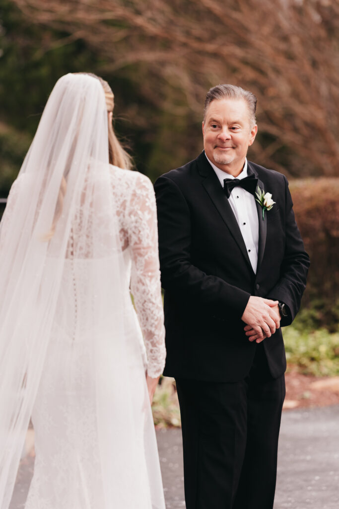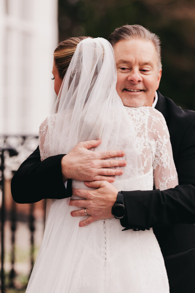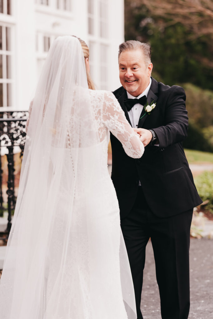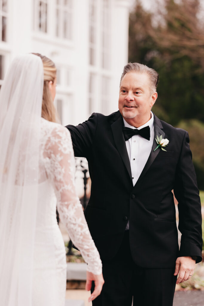 One of the most tender moments of the day came just before the ceremony, Olivia’s first look with her father. We stepped outside, and all seemed to hush as he turned and saw her, emotion flooding every line of his face. It was the kind of moment that doesn’t need direction at all, only space to breathe.