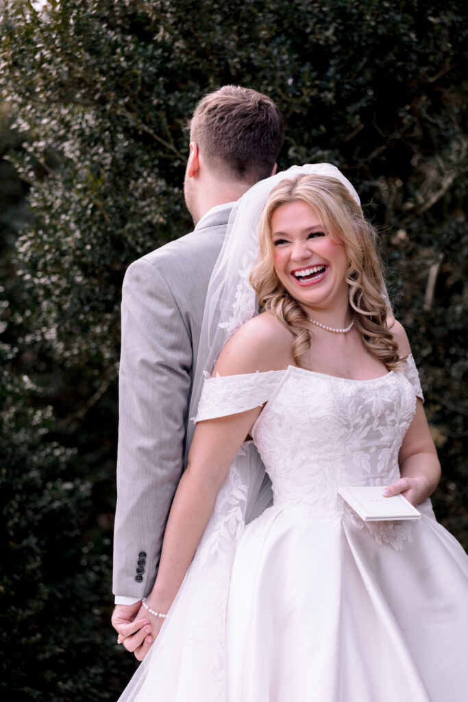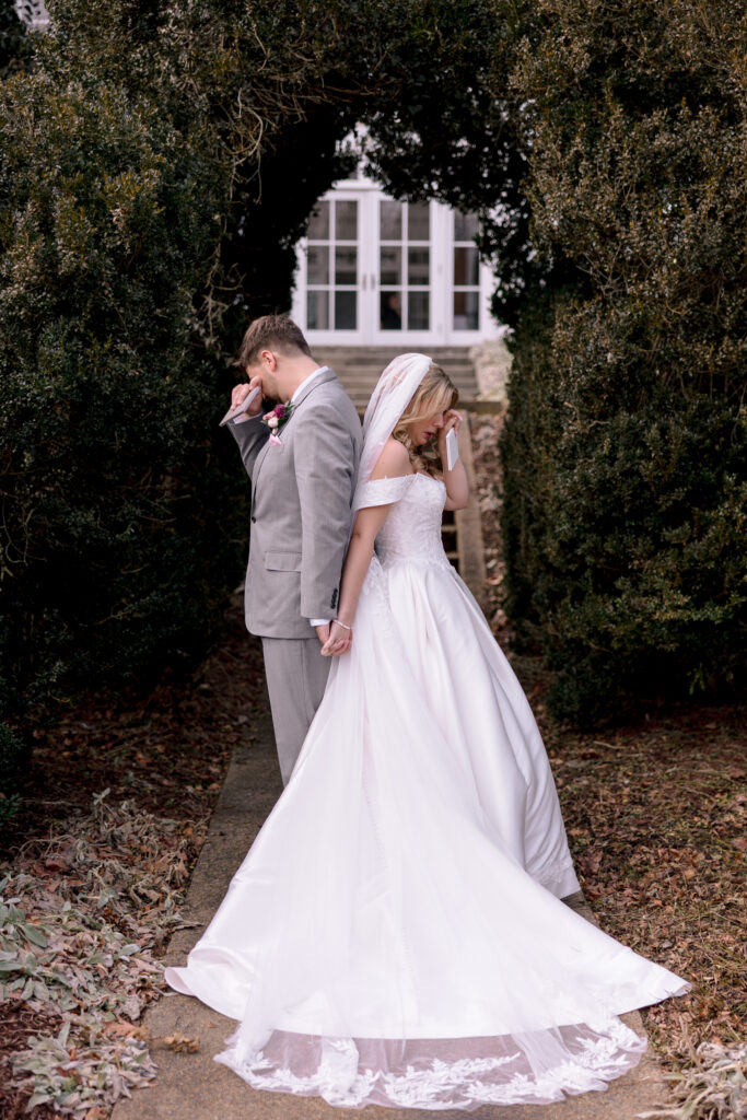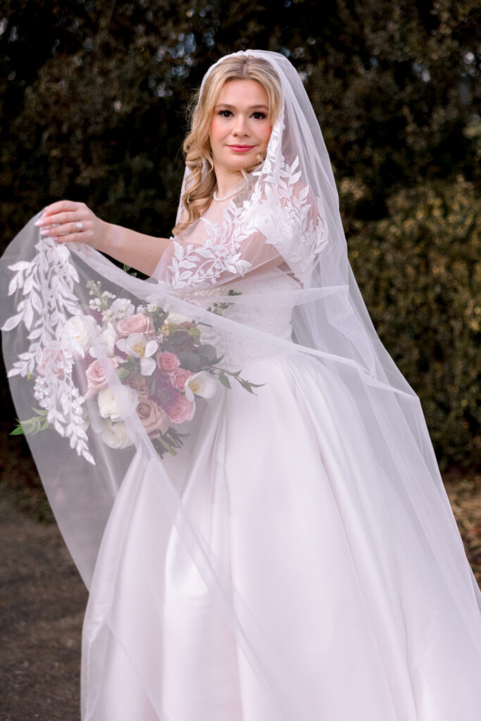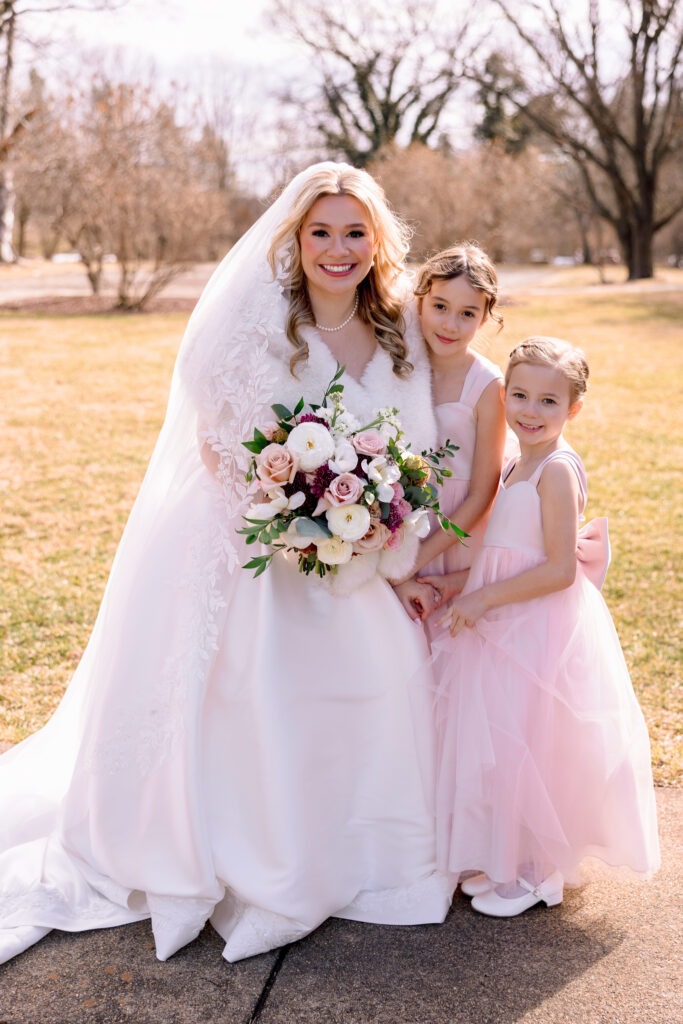 Winter light filtered softly through windows as Grace stepped into her gown from Ava Laurénne. The silhouette was timeless. The material’s magnificence was stunning. Elegant. Effortless. Her beauty look by Amanda of Agape Makeup & Hair felt luminous and enhancing. Grace looked like royalty.